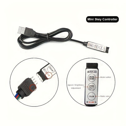1pc 5v Rgb3535 Led Strip, With USB And Three-key Control, For Colorful Tv Background Decorative Light For Living Room And Bedroom Ambience