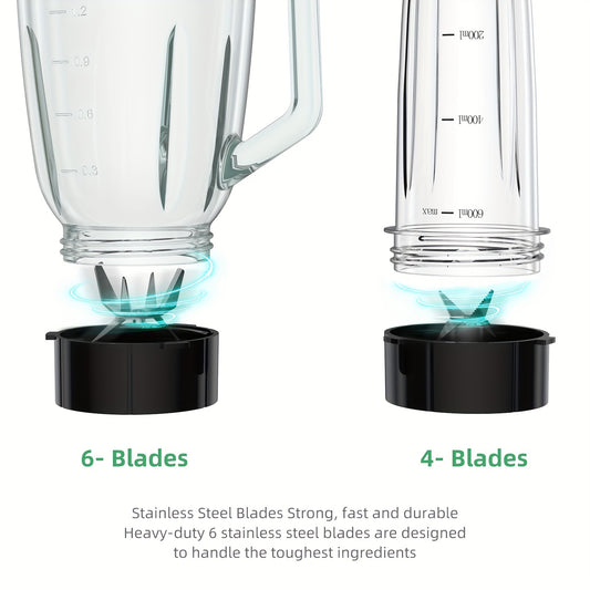 1300W Smoothie Blender With 1.5L Glass Jar And 600ml BPA FREE Plastic Bottle, Lid & Blades, Personal Blenders Combo For Frozen Fruit Drinks, Sauces
